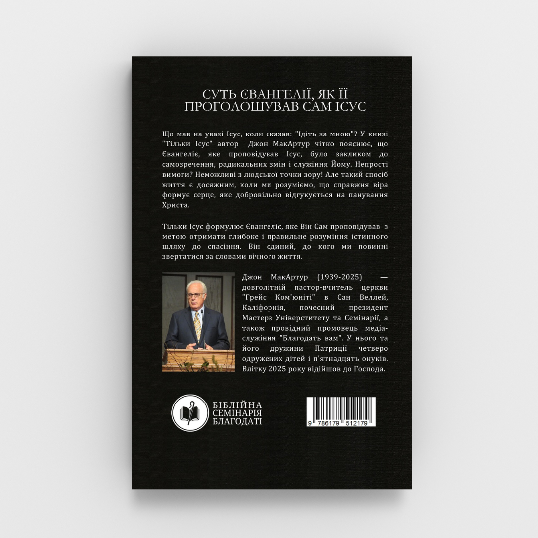 Що мав на увазі Ісус, коли сказав: “Ідіть за мною”? У книзі “Тільки Ісус” автор Джон МакАртур чітко пояснює, що Євангеліє, яке проповідував Ісус, було закликом до самозречення, радикальних змін і служіння Йому. Непрості вимоги? Неможливі з людської точки зору! Але такий спосіб життя є досяжним, коли ми розуміємо, що справжня віра формує серце, яке добровільно відгукується на панування Христа.
